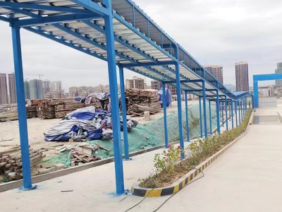 本产品专为施工电梯出入口设计,采用全螺栓装配式钢架结构,主立柱100×100×2.5mm热镀锌方钢,顶棚双层防砸(上层彩钢瓦+下层花纹钢板),中间300mm缓冲间隙。工厂制造,快速发货,所有钢材国标Q235B,镀锌层≥65μm。棚体可兼作进出口钢筋加工棚及安全通道防护棚,四周可按需加装围挡,有效防止高空坠物伤人。生产厂址:湖北宜昌。