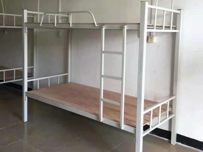 应用场景。该床广泛用于工厂集体宿舍、建筑工地临时住房、物流园司机休息室及出租公寓。上下铺结构每床位仅占地1.7平方米,床下净高390毫米可放安全帽、工具包等。爬梯左右侧均可安装,适应不同房间开门方向。涂层耐机油和弱酸碱,机械加工厂维修区同样适用。