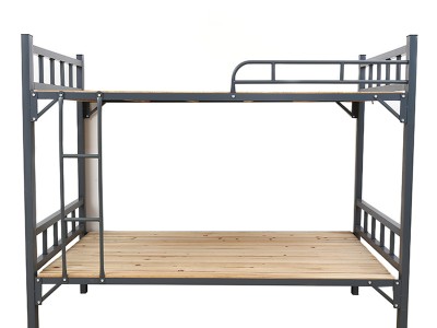 应用场景。该床广泛用于工厂宿舍、学校寝室、工地临时住房及出租公寓。上下双层每床位仅占1.7平方米,床下净高390毫米可放安全帽或脸盆。爬梯左右可换,适应不同开门方向。涂层耐机油弱碱,机械加工厂更衣区同样适用。