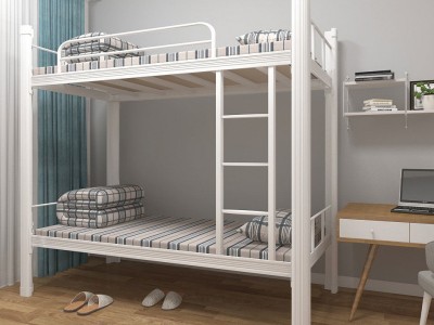 问:铁架床上下铺的护栏能否承受成年人倚靠?答:经120公斤水平推力测试无永久变形,可放心倚靠。问:床板会发出异响吗?答:支撑筋预贴2mm消音毡,撕膜即无声。问:定制颜色起订量?答:白色现货,灰蓝绿三色20套起订,交货10天。问:运输中漆面损伤怎么办?答:随箱附自喷修补漆。