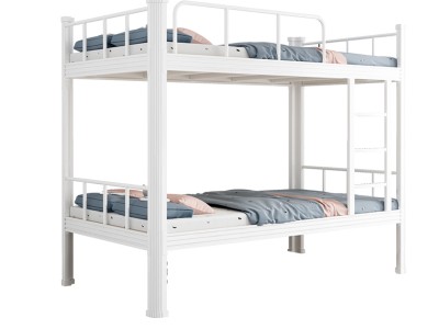 产品简介。主立柱采用50×50×1.8mm方管,横梁40×40×1.5mm,床板支撑筋30×30×1.2mm间距210mm共8根。上铺护栏净高360mm,间隙45mm,爬梯踏板冲压六道防滑凹槽。表面静电喷塑白色涂层,经酸洗、磷化、高温固化。床板标配18mm松木指接板,甲醛释放量低于0.02mg/m³。