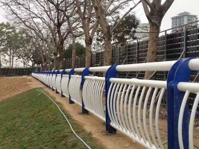 公路桥梁分隔栏杆专门用于高速公路和城市快速路的中央隔离带,主材选用Q355B热镀锌带钢,管壁厚度2.8mm。立柱采用120×120×4mm方管,横梁三道,竖杆净距12cm,每节长度2米,高度1.1米。整体热浸锌层厚度90μm,外覆聚酯粉末涂层80μm,耐盐雾测试800小时无红锈。法兰盘预留Φ20mm螺栓孔适配M18地脚螺栓,多年老厂从下料到成品全程质检。
