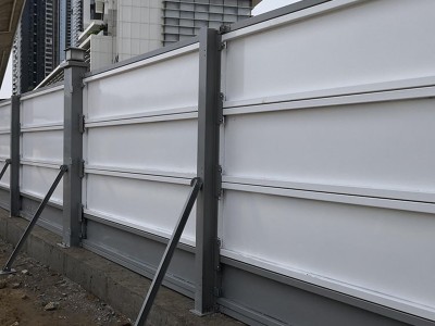 将小草围挡面板依次嵌入横梁槽内,每块面板用6颗自攻螺钉固定,钉距≤300mm,钉头沉入板面。